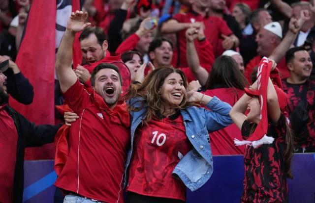 整个下半时,看台上情绪最热烈的是阿尔巴尼亚球迷,他们太渴望本队扳平比分。最后,即使比赛以失败告终,阿尔巴尼亚球迷仍然非常开心度过这样一个节日,他们在看台上热烈地对本队球员致敬,就像庆祝一群胜利者。毕竟,能够参加欧洲杯,已经是重要的荣誉。